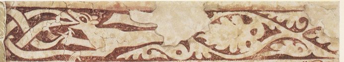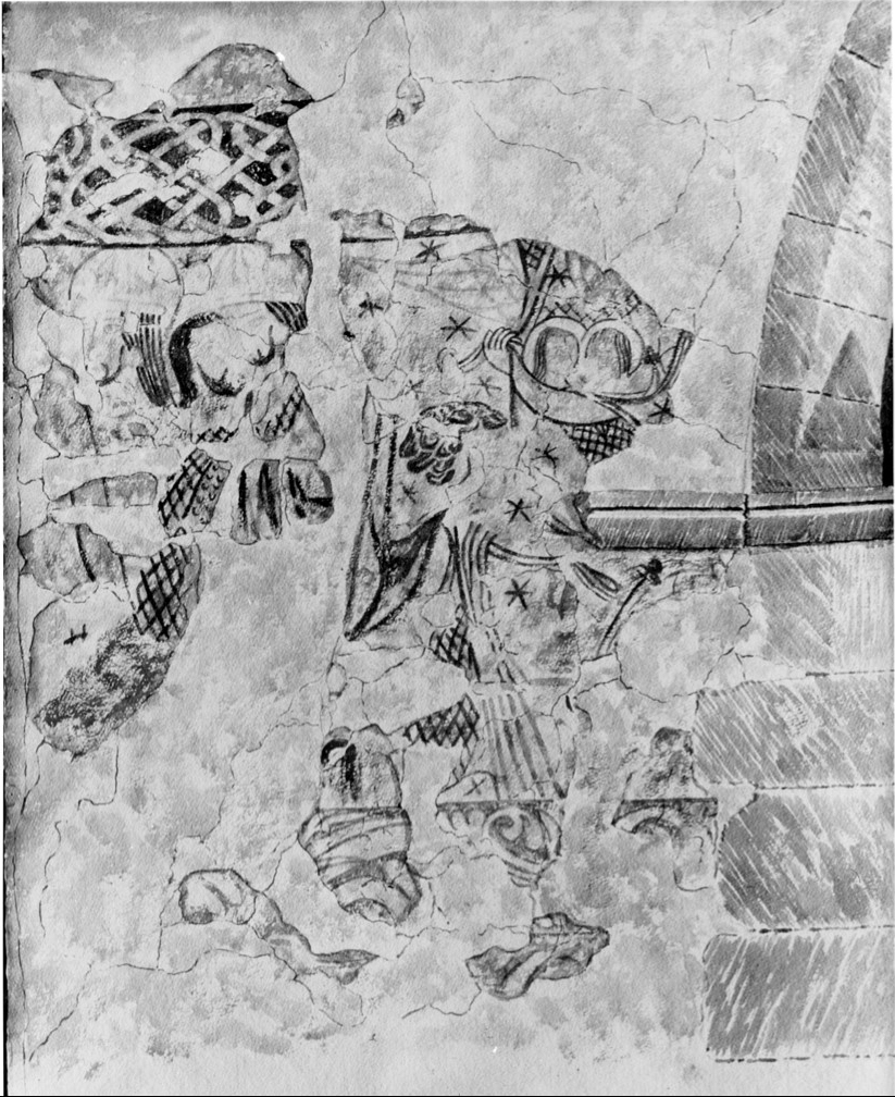 South Wall: The scenes as far as the 16th Century window have been lost except for a small part of the lower border.