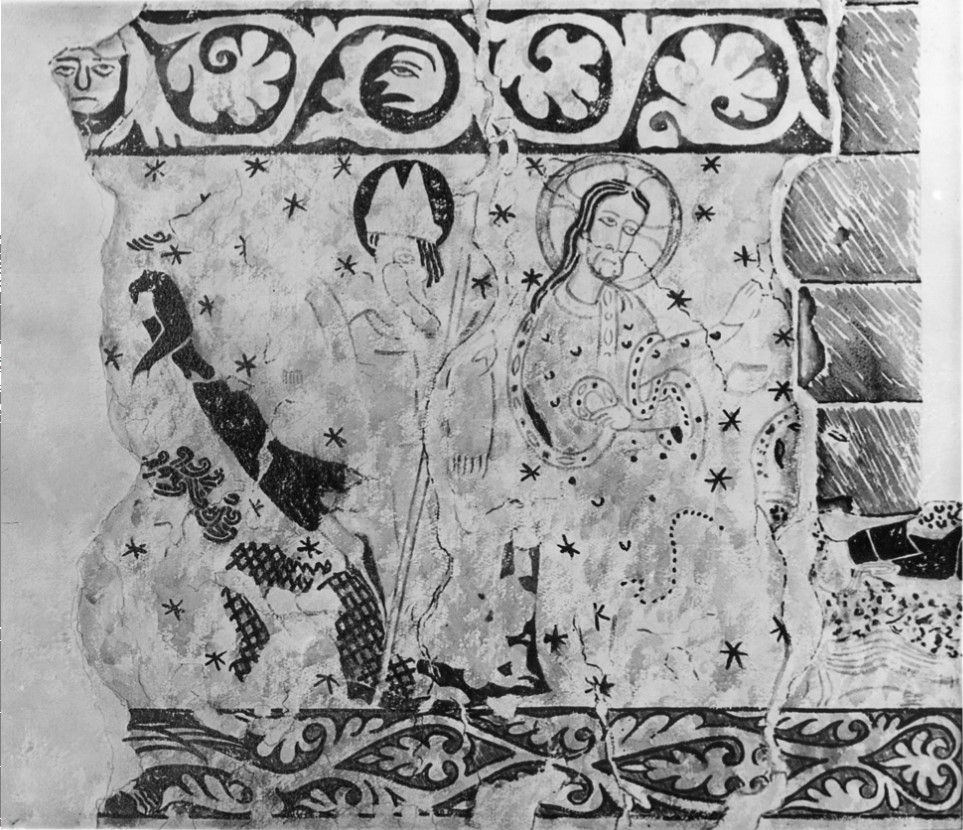 1. There are no fewer than five successive schemes of painting in the church. (Five is a conservative estimate.) The first representing the Life of St. James is dated between 1190 -1220.
